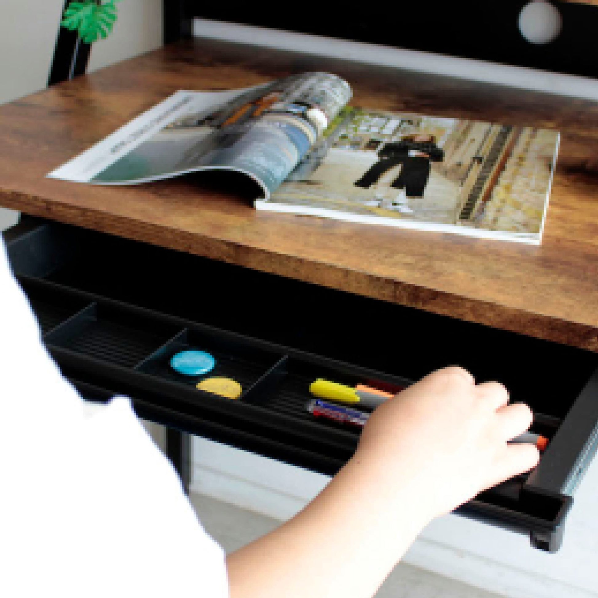 ケーブルを綺麗にまとめられる穴付きで、ケーブルやコードを気にすることなく作業に集中できます。